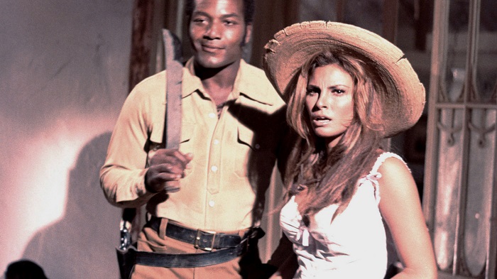 Though barely a footnote in the history of American westerns, the 1969 potboiler, 100 Rifles, caused a minor stir upon release for throwing sex siren, Raquel Welch, and African-American NFL player turned actor, Jim Brown, together in a lense-steaming interracial on-screen relationship. Off screen, however, the pair despised each other. Co-star, Burt Reynolds, traced the source of their friction to an on-set incident in which Welch – who was travelling in a full Land Rover with Brown, Reynolds, and others on the way to the film’s remote set – refused to stop and pick up a black stuntman who was walking along the blistering hot road to the shoot. Brown then told the driver to stop, picked Welch bodily up, deposited her beside the side of the road, and ordered the stuntman to take her seat. “From then on,” Reynolds writes in his autobiography, My Life, “Raquel would have preferred to be someplace else, and I can’t say that I blamed her.” In the biography, Raquel Welch, the actress says that, “nobody could possibly top Jim Brown. It was just awful.” According to Jim Brown, however, Welch was a pain-in-the-posterior-prima-donna. “My co-star is not my boss,” he told Roger Ebert. “But she had all her people around, telling the rest of us when publicity photos would be permitted and when they wouldn’t, and all of that. The only way to save myself was to just get out of that, and to withdraw from any contact. I did my job, but I completely withdrew from the BS involving Raquel’s image.”