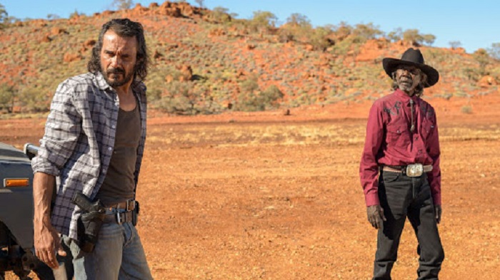 We then get re-introduced to the lead of the contemporary story. This is Detective Jay Swan (the broodingly handsome Aaron Pedersen reprising and re-invigorating his character from Mystery Road). Jay is a very flawed hero at the beginning of this yarn, weaving through the vast dusty landscape half-drunk behind the wheel of his beat-up 4WD. There is then a “meet cute” when ambitious – and also flawed – local white cop, Josh (Alex Russell), pulls him over. It is not until he shoves the uncomplaining driver into the local lock up that he realises that Jay is also a cop. Jay is out there to track down a missing Chinese prostitute, but his journey, as it turns out, is not just towards justice in the White Man’s legal sense, but towards a spiritual re-awakening for himself.