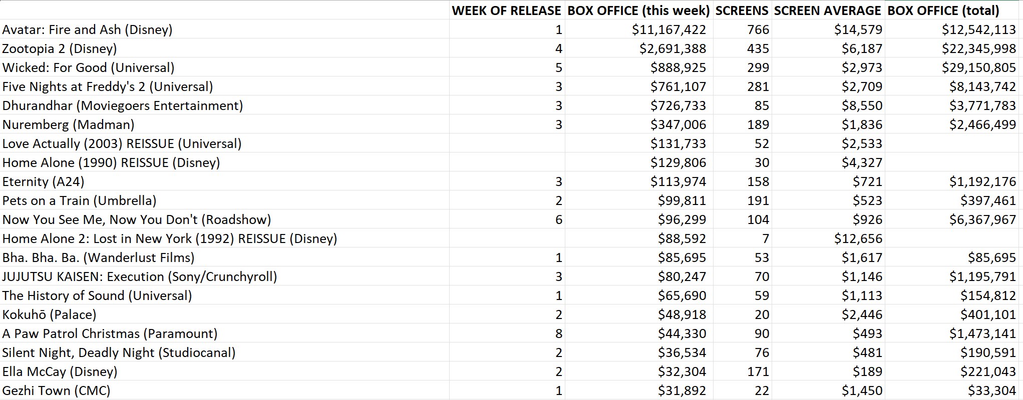 Apart from that – James Cameron’s Avatar: Fire and Ash dominated cinemas this weekend, and Wicked: For Good looks like it won’t earn as much as the first film!