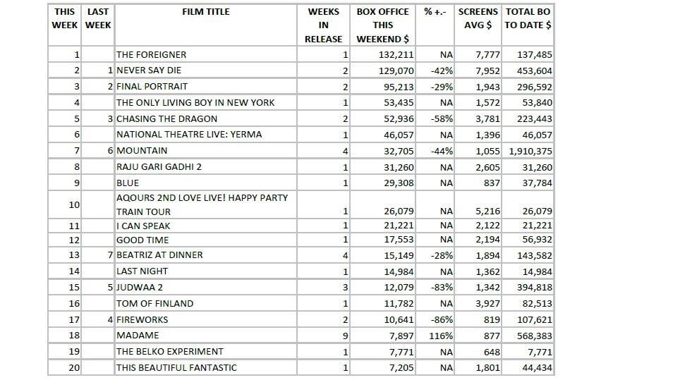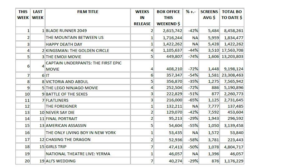 Box Office figures courtesy of the Motion Pictures Distribution Association of Australia