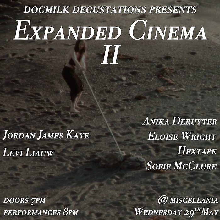 “We’re about to round out this year’s Degustations screening season (Dogmilk Degustations) with a night of expanded cinema performances at Miscellania on the 29th of May, featuring the latest boundary pushing work by local artists Sofie McClure, Jordan James Kaye, Hextape, Anika Deruyter, Levi Lauw and Eloise Wright. We’ve also been invited to guest-curate a couple of programs at this year’s St Kilda Film Festival. We’ll be putting on an encore performance of Sofie McClure’s expanded performance, alongside the inimitable Garden Reflexxx crew on Sunday June 9th. Then we’ll be screening a collection of Dogmilk produced short films, showcasing the latest work from Dogmilk members, on Sunday June 16th. Both promise to be a hell of a good time. Follow us on Instagram to stay in the loop (we’ve got heaps more exciting stuff on the horizon) and see what we’ve been up to in the past (we’ve done heaps of exciting stuff already).”