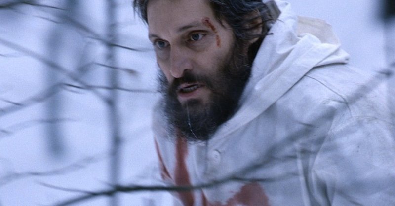 After blowing three Americans apart with a rocket launcher, Gallo’s never-named Taliban fighter is quickly captured, and is soon wearing those all-too-familiar orange overalls. Deaf from the rocket blast, he is interrogated and tortured by the US military, but never says a word. Shipped from the scorched surfaces of Afghanistan to the snowy wastes of somewhere in Europe, the Taliban fighter is cuffed with other US enemies in a truck and sent en route to a holding facility. When the truck overturns, however, he is thrown loose, and provided with an opportunity for escape, which he takes by tearing off into the icy uncertainty that lays before him, which at least appears more inviting than the continued torture that awaits him at the hands of the US military. Scourged by the cruelty of the elements, and relentlessly pursued by land and air, the Taliban fighter embarks on a hellish, horrific journey for survival that will involve guns, animal traps, chainsaws, and – in a scene to rival anything cooked up by shock, master John Waters – lactation.