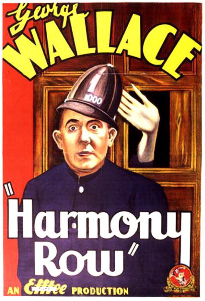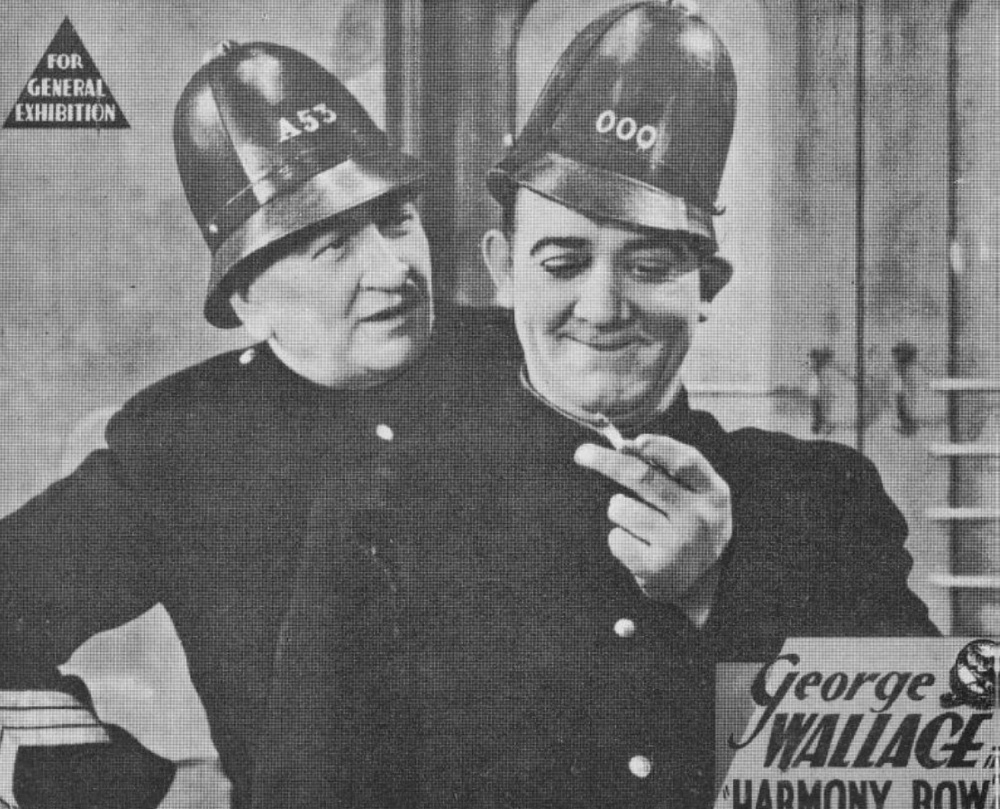 It was a star vehicle for vaudevillian George Wallace, a huge name in pre-World War Two Australian stage entertainment. We’ve discussed him previously in this series in pieces on his late ‘30s vehicles Let George Do It and Gone to the Dogs, during which we’ve mentioned his first three features, for F.W. Thring, of which Harmony Row was the second; the other two were His Royal Highness and A Ticket in Tatts. Wallace also made a short film for Thring, Oh! What a Night, and starred in the feature Sheepmates which was abandoned during filming, and appeared in stage musicals for him like Collitts’ Inn. So, basically, F.W. Thring = big fan of Wallace.