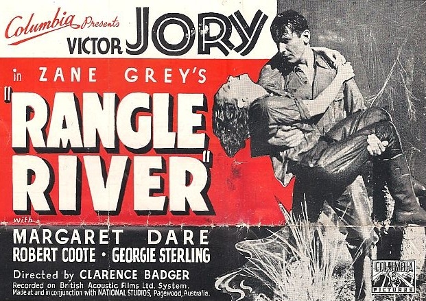 Peggy Scott, who worked on continuity for the movie of Rangle River, did an oral history with Graham Shirley where she claimed several people “had a go” at turning Grey’s basic plotline for Rangle River into a script, including herself, “and they finally mixed it all together”. Chief among those writers “having a go” were Australian filmmakers Charles and Elsa Chauvel, who were reasonably well established at the time, having launched Errol Flynn’s film career with In the Wake of the Bounty and made Heritage, but whose great films (Forty Thousand Horsemen, Jedda, Sons of Matthew) were ahead of them. The star and director of Rangle River may have contributed to the script as well – according to Walder, “it was left to Mr Jory and Mr Badger to make it [the story] ready to go before the cameras”.