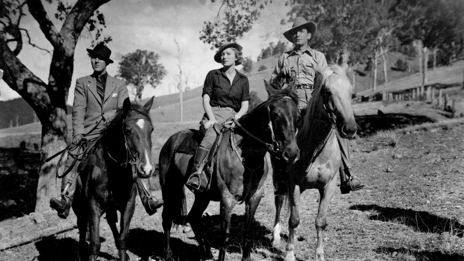 Victor Jory, who plays Dick Drake, was a Hollywood character actor with a wonderful deep speaking voice, and (to be blunt), a character actor face which meant that he was mostly typed as villains (most famously as the overseer in Gone with the Wind). He’s not conventionally handsome, which is probably why he accepted the role in Rangle River on the other side of the world, as it gave him the chance to play a romantic leading man (while in Australia, his actress wife appeared in a few stage plays). The role of Marian was played by Margaret Dare, a model discovered for this movie by Charles Chauvel; Dare is spirited, beautiful and quite a good performer – she tried her luck in Hollywood after Rangle River but didn’t get far: this was her only role (apparently the fact that she was terrified of horses caused troubles during the shoot). There’s a fun bit in the movie when Dare/Mirian says “I’m not going to be ornamental” while literally taking off her clothes to get into a nightie.