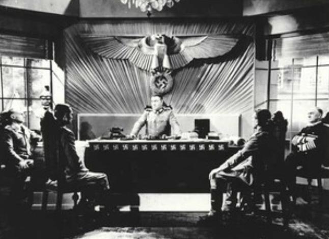 The Power and the Glory begins just prior to World War Two with a bunch of Nazis (including Sydney Wheeler and Eric Reiman) sitting around planning world domination rather in the style of old Monogram pictures with Bela Lugosi. (Wheeler actually says “nothing stands in the way of world domination by Nazi Germany” and “I have no conscience but Germany”, while Reiman declares “The new Germany will never rise except by blood and iron”). They’ve developed a nasty nerve gas, a side effect of efforts by a Czech scientist (Lou Vernon) and his daughter (Katrin Rosselle) to invent a new fuel. The scientist doesn’t want to use his invention for evil, but he’s threatened with detainment in a concentration camp; he destroys his lab and manages to escape with his daughter, but they are captured. We meet two members of the British secret service who are in a café – when another man is arrested the two of them flee, they trick a passing German car into stopping and knock them out, then discover the scientist and his daughter are in the back seat. The secret service agents take the Germans’ uniforms and drive the prisoners to the airport and manage to escape in a plane.