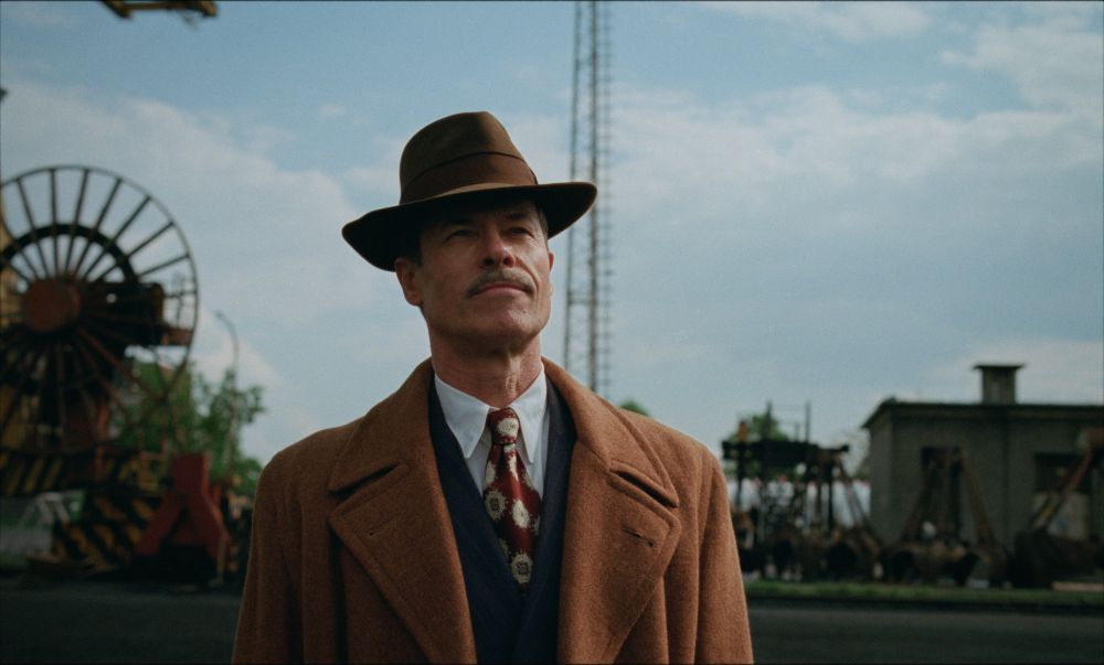 In The Brutalist, Pearce sports a moustache, just as he did for his Emmy-winning role in Todd Haynes’ TV mini-series Mildred Pierce.