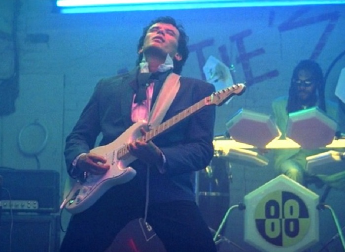In W.D Richter’s wild 1984 cult favourite The Adventures Of Buckaroo Banzai Across The 8th Dimension, Peter Weller is the titular Dr. Buckaroo Banzai, physicist, neurosurgeon, test pilot, and rock star, who leads his band/science team, The Hong Kong Cavaliers, on a mission to save Earth from an interdimensional invasion by Red Lectroids led by the villainous Dr. Emilio Lizardo (John Lithgow). Featuring a fantastic cast of character actors and cult heroes, including Jeff Goldblum, Clancy Brown, Christopher Lloyd, Vincent Schiavelli, Dan Hedaya, and more, this truly bizarre pulp curio throws everything into the mix and expects the audience to keep up, thrusting us into a world of weird science, warring aliens, rock shows, mysterious twins, and more. It’s a genuine headscratcher, which is probably why audiences were left nonplussed, with the confidently promised sequel never eventuating. It’s certainly a singular slice of high weirdness, though, and features a great fictional on-screen rock band in the form of The Hong Kong Cavaliers, who play a groovy kind of blues rock. Peter Weller, an accomplished musician, played the guitar and pocket trumpet, did his own vocals, and learned to mime piano playing for the film, while much of the music comes courtesy of legendary producer Bones Howe. Travis Johnson