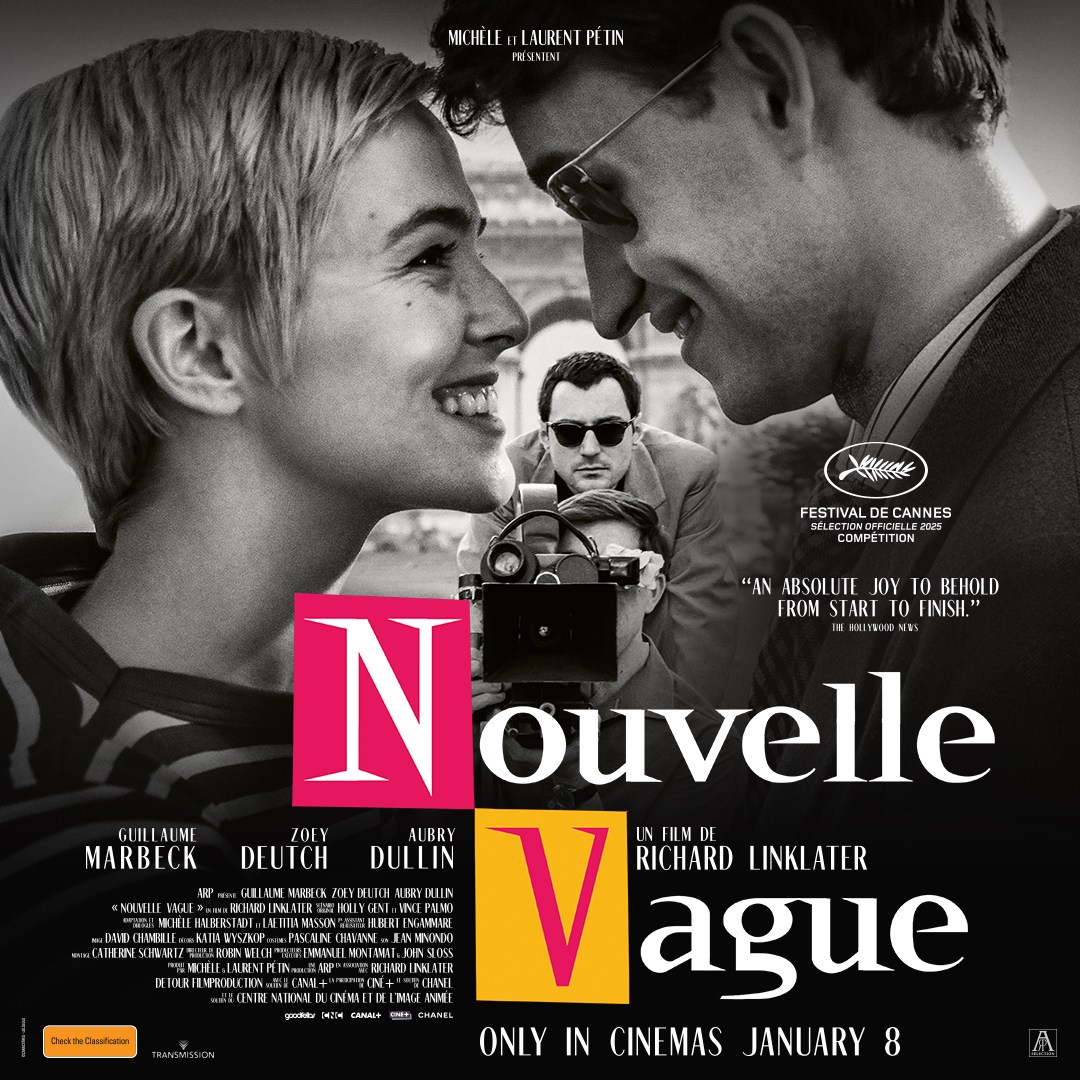 From Director Richard Linklater, NOUVELLE VAGUE is the story of Jean-Luc Godard making Breathless (A bout de souffle). Starring Guillaume Marbeck, Zoey Deutch and Aubry Dullin, the film is a love letter to the revolutionary magic of the French New Wave and a homage to Godard’s influential 1960 film, capturing its youthful dynamism and creative chaos.