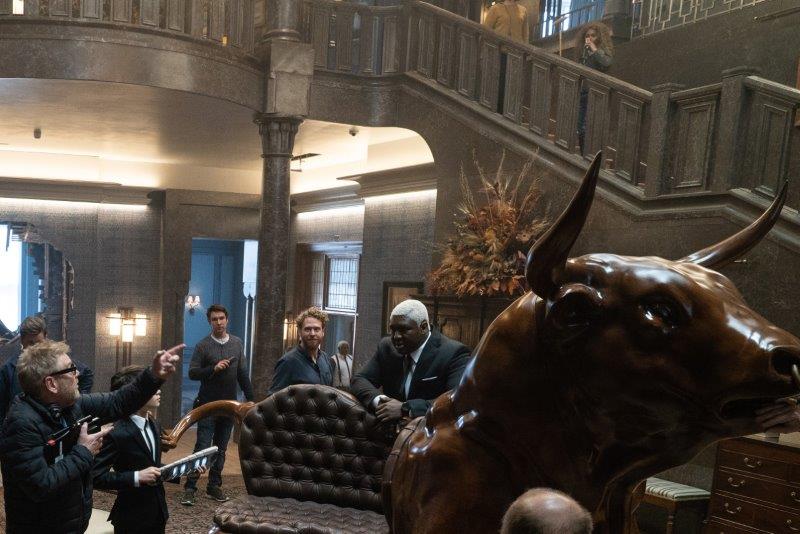 We decided that the Butler family have this recessive gene, almost similar to albinoism or vitiligo that passes through the family. [In the Fowl house], you’ll see some of the other portraits of the brothers, some of them have white hair, some of them have blue eyes, some of them are bigger and smaller. Different traits that have been passed down. It was something that we talked about – what his look would be, maybe it would be bearded or maybe he would be totally bald, and this came up. I think Carol [Hemming], our makeup and hair head, had some ideas and showed us some pictures and I was like ‘That!’ And Ken loved it. And then he said, ‘But the beard’s got to go!’ I was like, ‘Agh, I don’t want to lose my beard.’ But it went and I actually really love the look.