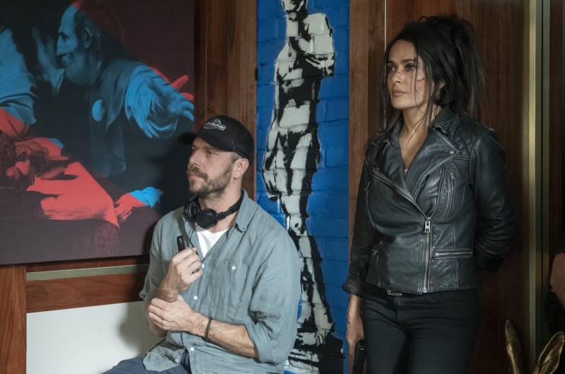 “Before I sat down and wrote the script, I cooked up the story and my first port of call was to pitch it to Salma and Ryan to get across the mechanics of what I was doing. Salma absolutely loved it. She was like, ‘let’s go there; let’s do it’. I wanted to explore that notion of someone who’s been pursuing their career and left it too late to have kids – obviously she’s had a career as a murderer and a con-woman. But it’s still a career! I wanted to explore that mid-life crisis where she decides she now wants to be a mother.”
