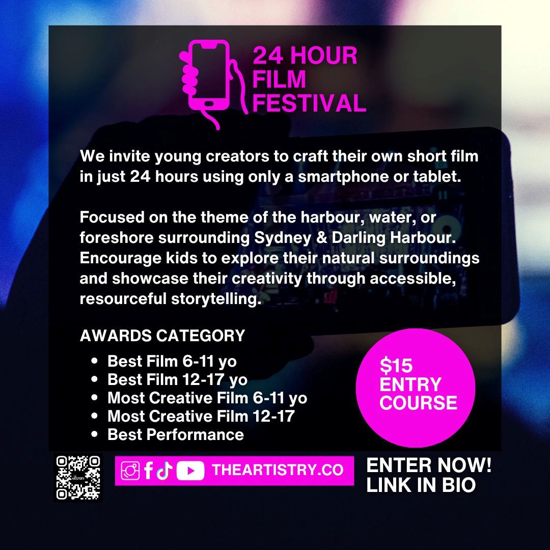 The Artistry 24-Hour Kids’ Smartphone Film Festival invites young creators aged 6-17 to craft their own short film in just 24 hours using only a smartphone or tablet. In line with the theme of our festival – The Artistry – this festival encourages kids to explore the presence of rich cultural diversity in Australia, including the Darling Harbour precinct as reflected in the people and other infrastructures like parks, restaurants, banks or any other environments. This festival is an opportunity to showcase their creativity through accessible and resourceful storytelling. And ready to turn your phone or tablet into a creative powerhouse? Join our Smart Phone Filmmaking Courses and explore: