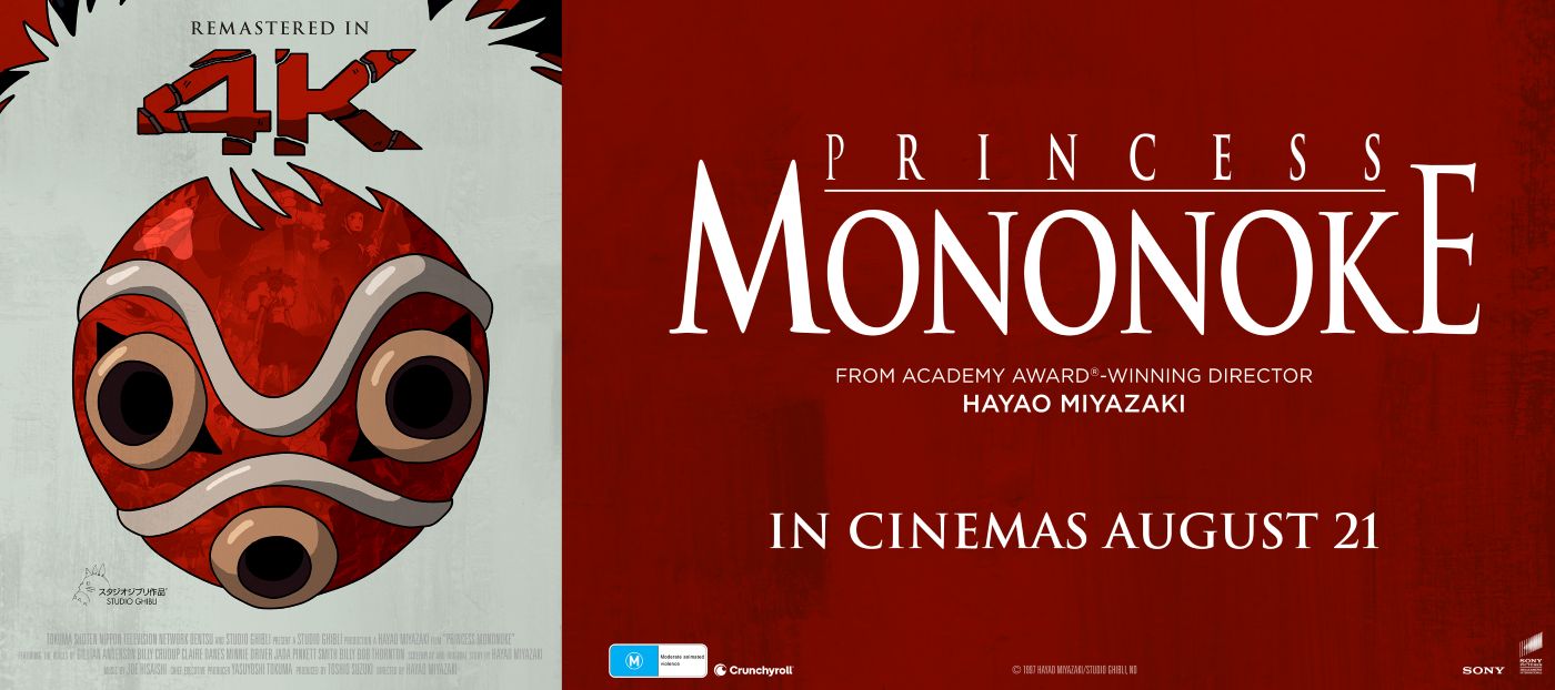 Crunchyroll, the ultimate home for anime worldwide, announced today that Hayao Miyazaki’s epic masterpiece Princess Mononoke will return to cinemas in Australia and New Zealand on August 21, distributed by Crunchyroll and Sony Pictures Releasing International. Remastered in 4K and released in IMAX for the first time ever, the film is making a triumphant comeback to cinemas in both Japanese with English subtitles and dubbed in English.
