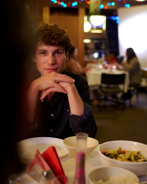 Even though Nicholas Denton’s mother is an actress [ED: Jane Turner, best known as Kath from Kath & Kim], he says that he never dreamt of performing. “I went to university, I did a history, art history degree. I didn’t finish it. A friend of mine asked me to come and do a children’s theater show that was paying a lot of money. I was like, ‘alright, yeah, I’ll try it’. And I just liked it. I realised I could enjoy myself, I could make some money, I could meet really nice people and I could travel. I also realised that a lot of time with acting, if you just care enough about the thing that you’re doing, be it the press, be it the scene, be it the writing process, be it the whatever, as long as you care enough, you’ll have a good time.”