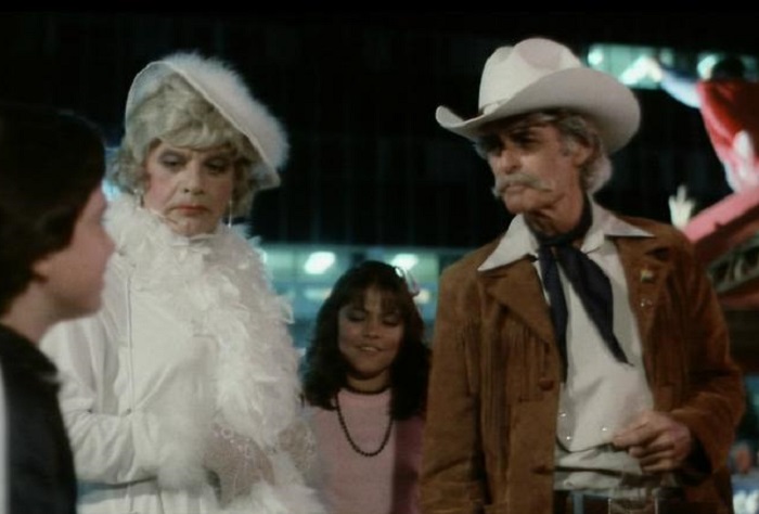 Though undeniably salacious, Angel is a lot more than its nasty premise might suggest. “High school honour student by day, Hollywood hooker by night,” screamed the posters. But despite initial appearances, Angel is also an incredibly warm, big-hearted film, as the essentially orphaned Molly creates a loving surrogate family of oddballs for herself amongst the sleaze and sin of LA’s notorious Hollywood Blvd. Looking out for fifteen-year-old (yes, again, that’s fifteen-year-old!) Molly is a crew of loveable, marginalised misfits: aging movie cowboy Kit Carson (western icon Rory Calhoun), street performer Yoyo Charlie (Steven M. Porter), drag artist Mae (a wonderful turn from Dick Shawn), fellow prostitutes Crystal (Donna McDaniel) and Lana (Graem McGavin), and Molly’s eccentric artist landlady, Solly Mosler (played with a typical lack of inhibition by cult superstar Susan Tyrell).