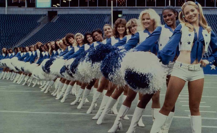 Though NFL teams have always had cheerleaders, The Dallas Cowboys Cheerleaders were the first to truly become a pop cultural commodity unto themselves. The pure Americana of their costumes, their greater air of professionalism, and their impressive dancing skills meant that The Dallas Cowboys Cheerleaders captured audience attention in a way that other cheer squads couldn’t. The savvy marketing soon followed, with the red-white-and-blue dance squad from Texas soon emblazoned on posters and calendars, and also making major incursions into America’s vaulted pop cultural pantheon.