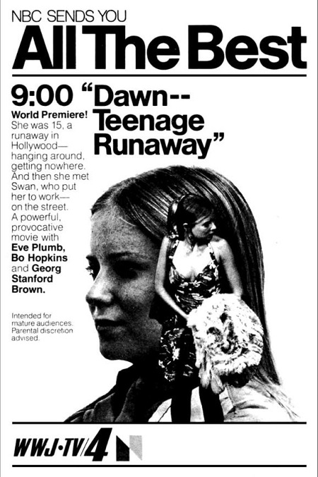 In this regular column, we drag forgotten made-for-TV movies out of the vault and into the light. This week: the 1976 cautionary tale Dawn: Portrait Of A Teenage Runaway, starring Eve Plumb, Leigh McCloskey, Lynn Carlin, Georg Stanford Brown and Bo Hopkins.
