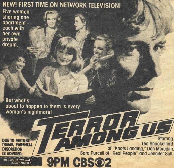 In this regular column, we drag forgotten made-for-TV movies out of the vault and into the light. This week: the 1981 psycho-thriller police procedural Terror Among Us starring Ted Shackleford, Don Meredith, Jennifer Salt and Sarah Purcell.