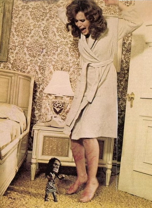 Adept at playing a wide variety of on-screen characters – sweet, angelic innocents; sunny, loose-limbed freewheelers; brittle women on the edge; sturdily capable heroines; and the literally certifiably insane (witness the deleterious wonders of her performance as Mother Firefly in Rob Zombie’s House Of 1,000 Corpses) – the curiously beautiful and always dynamic Karen Black had charisma and talent to burn, and the three-story portmanteau Trilogy Of Terror (in which she plays the very disparate leads in each unconnected story) really allows this gifted performer to spread her actorly wings in the most fascinating and compelling of ways.