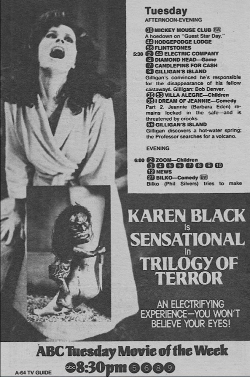 In this regular column, we drag forgotten made-for-TV movies out of the vault and into the light. This week: the 1975 horror portmanteau Trilogy Of Terror, starring Karen Black, directed by Dan Curtis, and based on stories by Richard Matheson.
