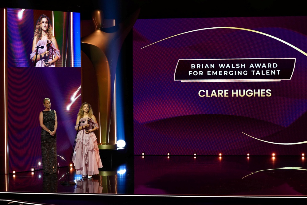 Clare Hughes received the Brian Walsh Award for emerging Australian talent for her roles in streaming series, such as Ponies (2026) and Ten Pound Poms (2025).